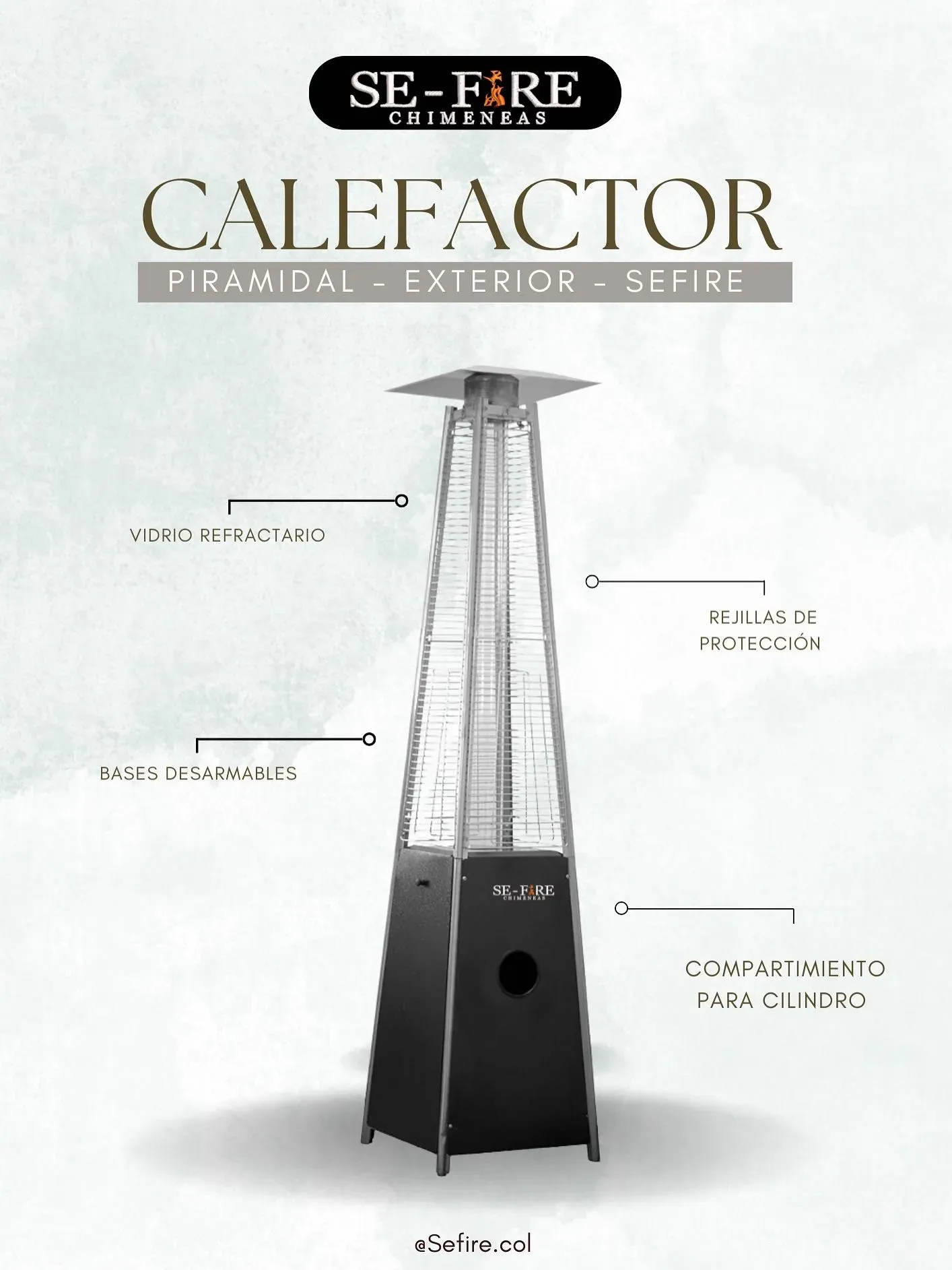 Calefactor Sefire tipo piramidal para zonas exteriores incluye ruedas